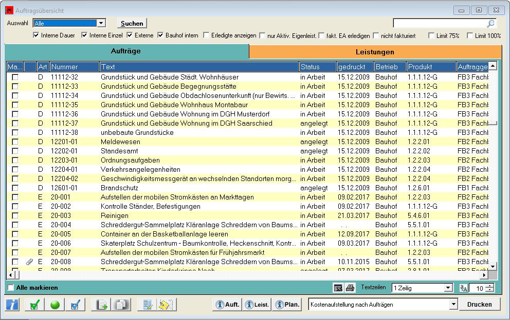 - Auftragsverwaltung von Dauer, Einzel und Externen Aufträgen