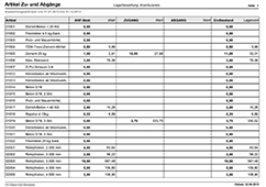 Detaillierte Auswertungen über Zu- und Abgänge, Listen über Artikel-beschaffung und Artikelhitlisten unterstützen Sie bei Ihrer Lagerführung.