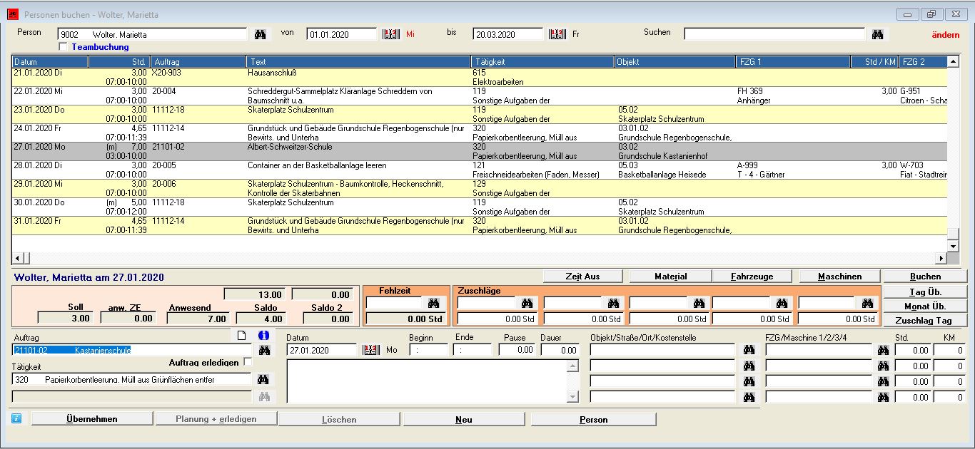 Eine Zeiterfassung steht als Zusatzmodul im Bauhof zur Verfügung. Ein Abgleich von Zeiten ist auch mit anderen Verfahren möglich.