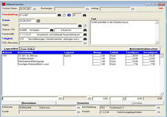 Bei allen Buchungsvarianten hat der Bediener alle wichtigen Informationen sofort im Zugriff. Plausibilitätsprüfungen reduzieren Fehleingaben. Über komfortable Suchfunktionen (Suche nach Nummer, Anfangstext oder Volltextrecherche) wird das schnelle Auffinden der relevanten Auftragsdaten gewährleistet. Das Buchungsformular orientiert sich am Aufbau des verwendeten Erfassungsbeleges und kann auf die tatsächlichen Eingabefelder individuell eingestellt werden.