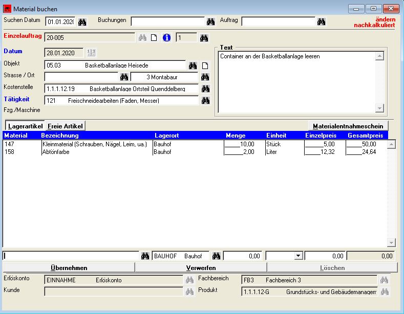 - Buchen von Material und Fremdleistungen